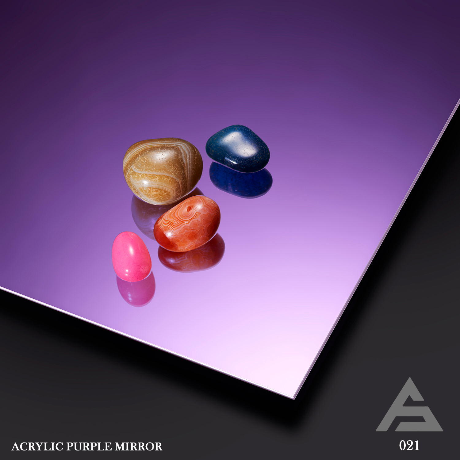 Purple Mirror Sheets are half the weight of glass in addition to being much stronger. At the same time, they are also much more flexible than glass mirror so bends when you work with them. This makes them cheaper to deliver and much easier to lift, handle, and install than traditional glass. Gives you the perfect finish look.